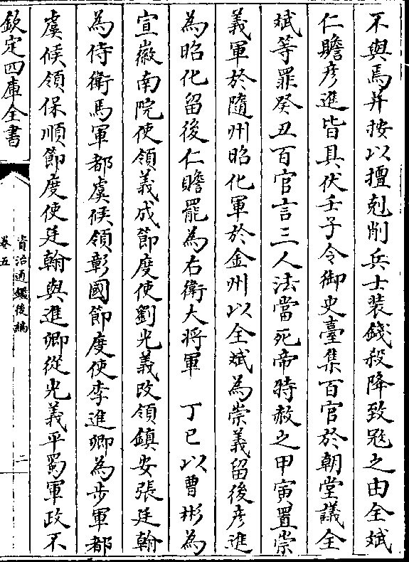 不与焉并按以擅剋削兵士装钱杀降致寇之由全斌仁赡彦进皆具伏壬子令御史台集百官于朝堂议全