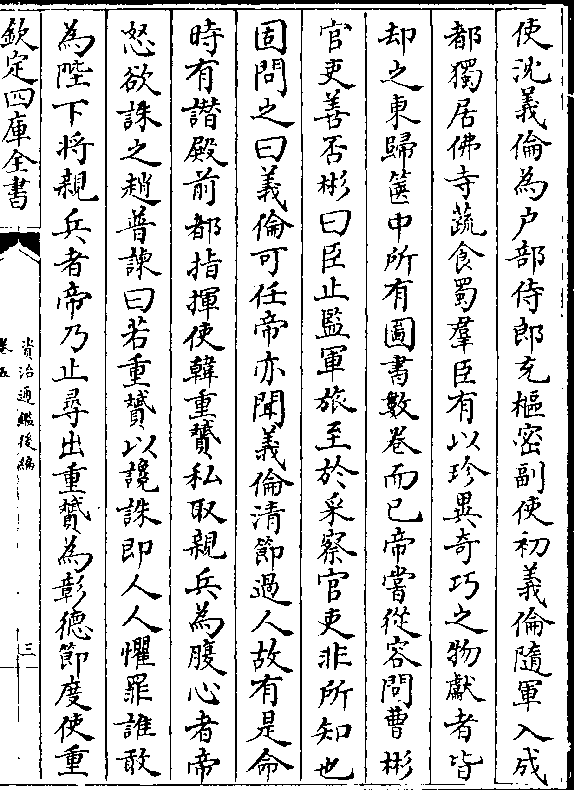 使沈义伦为户部侍郎充枢密副使初义伦随军入成都独居佛寺蔬食蜀群臣有以珍异奇巧之物献者皆
