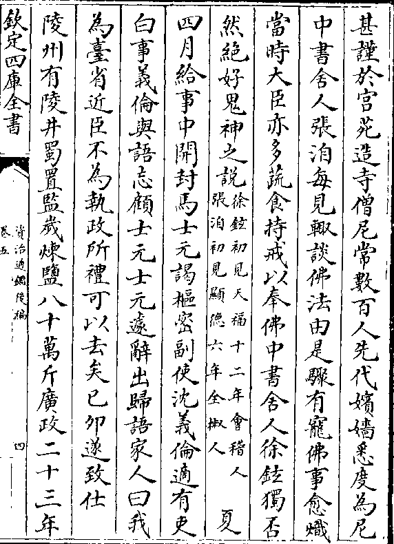 甚谨于宫苑造寺僧尼常数百人先代嫔嫱悉度为尼中书舍人张洎每见辄谈佛法由是骤有宠佛事愈炽