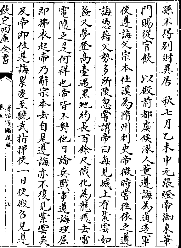 孙不得别财异居 秋七月乙未中元张灯帝御东华门赐从官饮 以殿前都虞候涿人董遵诲为通远军