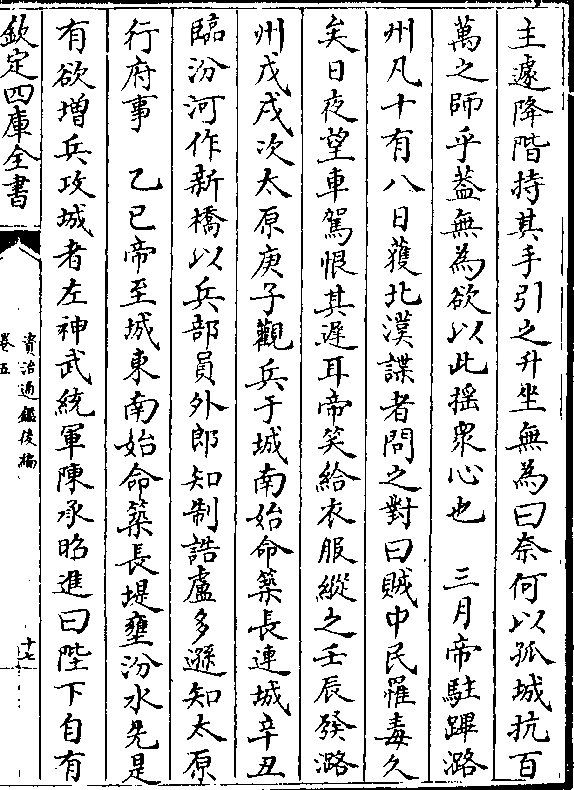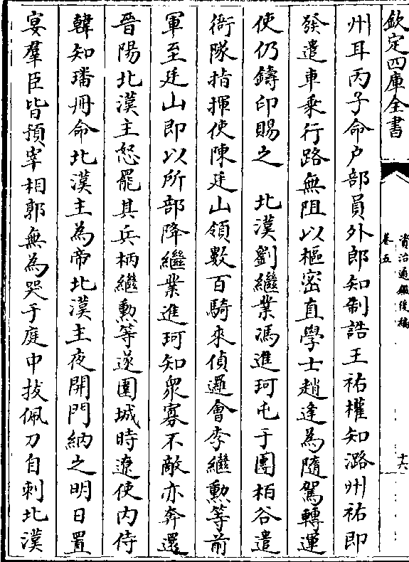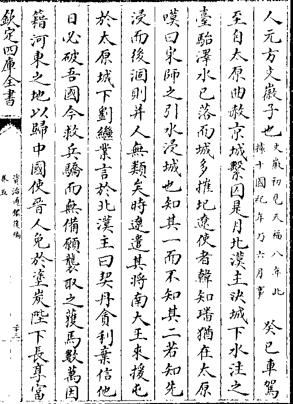 人元方文徽子也(文徽初见天福八年此/据十国纪年乃六月事) 癸巳车驾至自太原曲赦京城系囚是月北汉主决城下水注之