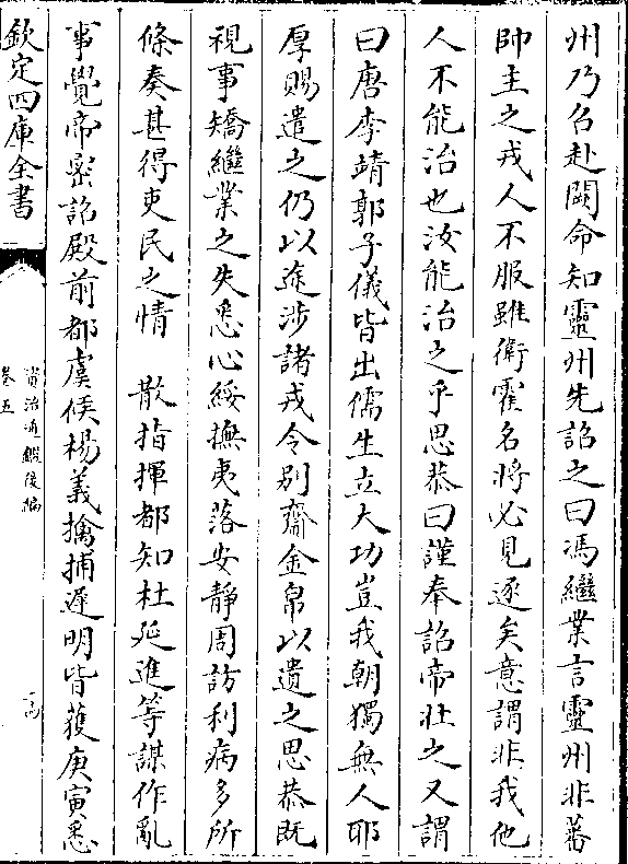 曰唐李靖郭子仪皆出儒生立大功岂我朝独无人耶