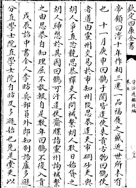 帝顾曰溥十年作相三迁一品福履之盛近世所未有也 十一月庚申回鹘于阗皆遣使来贡方物回鹘使