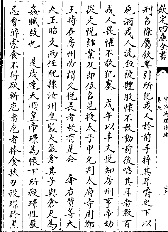 刑召僚属饮宴引所犯戎人于前手捽其耳嚼之下以卮酒戎人流血被体股慄不敢动前后啖其耳者数百