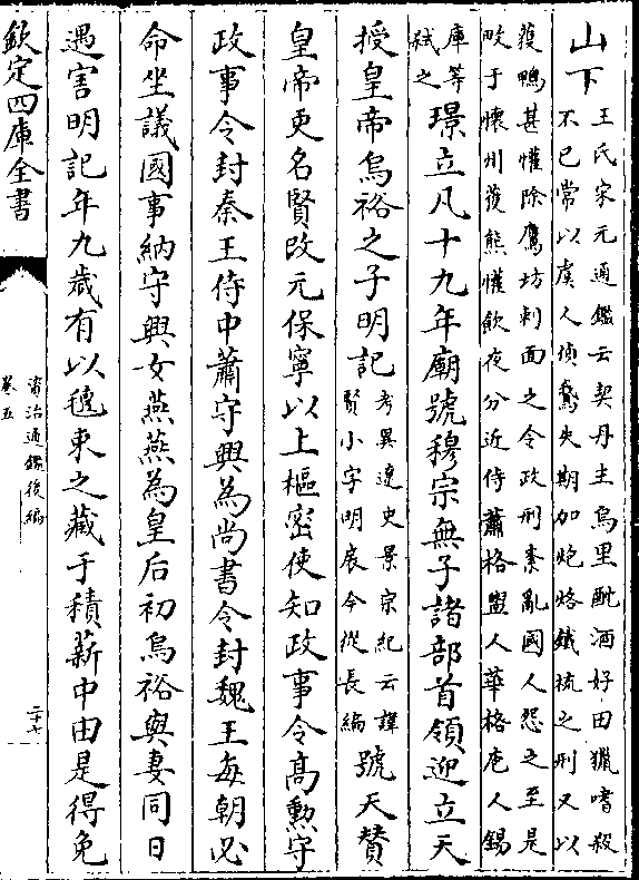 山下(王氏宋元通鉴云契丹主乌里酖酒好田猎嗜杀/不已常以虞人侦鹅失期加炮烙铁梳之刑又以)(获鸭甚欢除鹰坊刺面之令政刑紊乱国人怨之至是/畋于怀州获熊欢饮夜分近侍萧格盥人华格庖人锡)