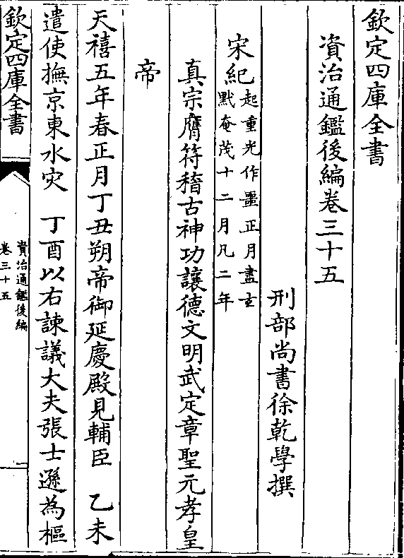遣使抚京东水灾 丁酉以右谏议大夫张士逊为枢