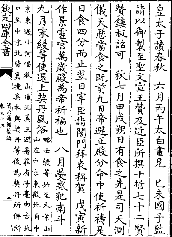 皇太子读春秋 六月丙午太白书见 己未国子监请以御制至圣文宣王赞及近臣所撰十哲七十二贤