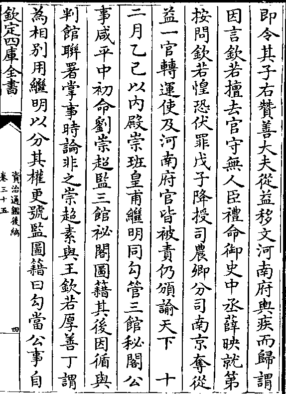 即令其子右赞善大夫从益移文河南府舆疾而归谓因言钦若擅去官守无人臣礼命御史中丞薛映就第