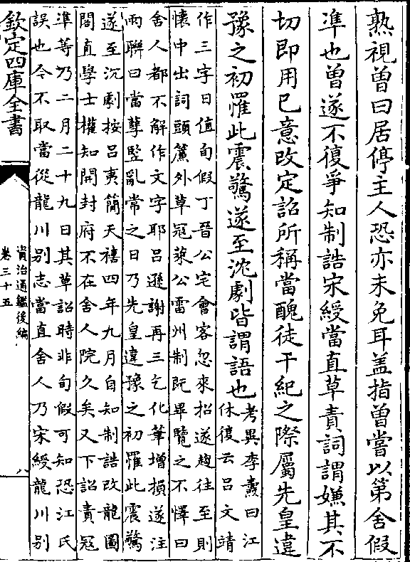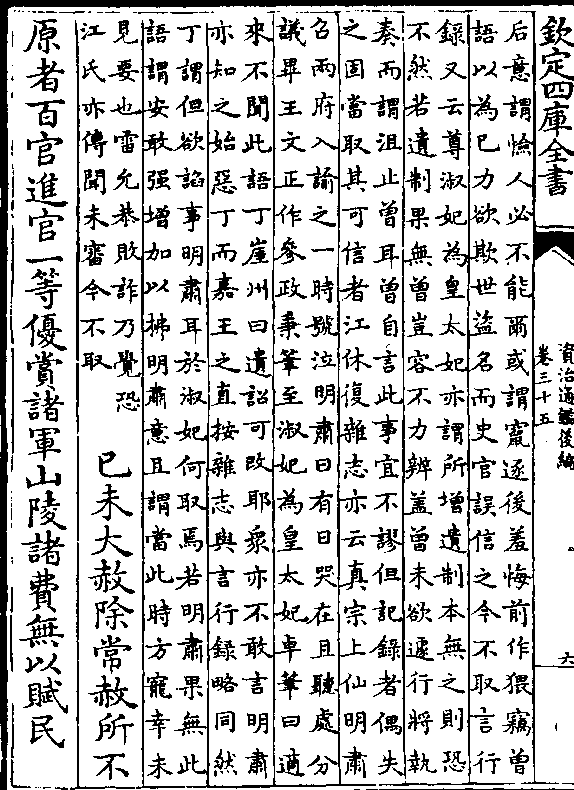 (后意谓憸人必不能尔或谓窜逐后羞悔前作猥窃曾/语以为己力欲欺世盗名而史官误信之今不取言行)(录又云尊淑妃为皇太妃亦谓所增遗制本无之则恐/不然若遗制果无曾岂容不力辨盖曾未欲遽行将执)