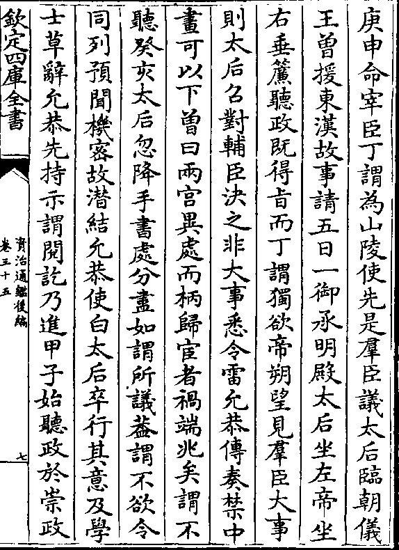 庚申命宰臣丁谓为山陵使先是群臣议太后临朝仪王曾援东汉故事请五日一御承明殿太后坐左帝坐
