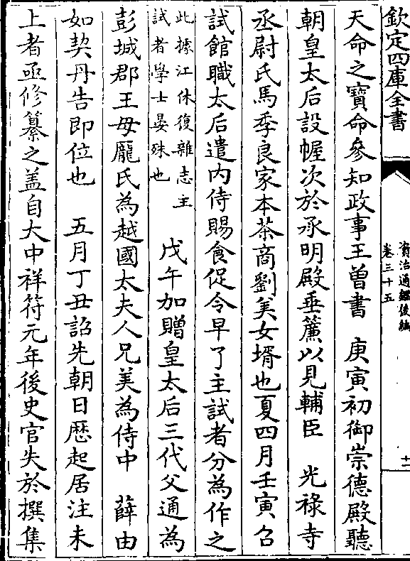 (召两府入谕之一时号泣明肃日有日哭在且听处分/议毕王文正作参政秉笔至淑妃为皇太妃卓笔曰适)