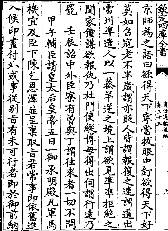 京师为之语曰欲得天下宁当拔眼中钉欲得天下好莫如召寇老不半岁谓亦贬人皆谓报复之速谓道出