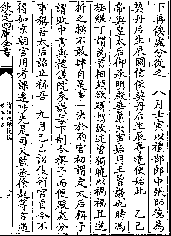 下再俟处分从之 八月壬寅以礼部郎中张师德为契丹后生辰国信使契丹后生辰专遣使始此 乙巳