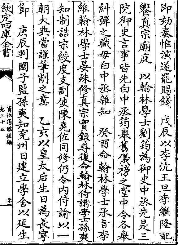 即劾奏惟演遂罢赐钱 戊辰以李沆王旦李继隆配飨真宗庙庭 以翰林学士刘筠为御史中丞先是三