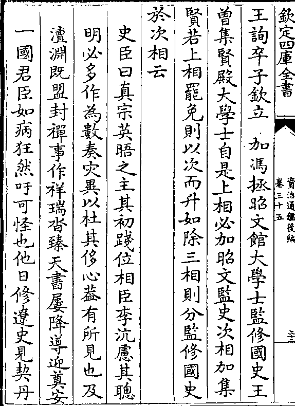 王询卒子钦立 加冯拯昭文馆大学士监修国史王曾集贤殿大学士自是上相必加昭文监史次相加集