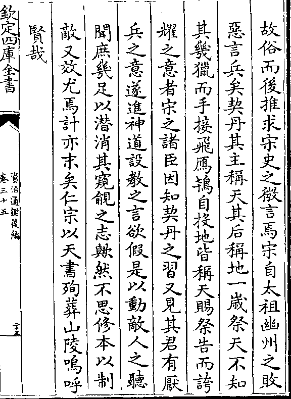 故俗而后推求宋史之微言焉宋自太祖幽州之败恶言兵矣契丹其主称天其后称地一岁祭天不知