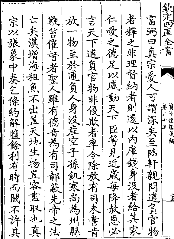 富弼曰真宗爱人可谓深矣至临轩亲问逋负官物者释之非理督纳者则还以内库钱身没者给其家
