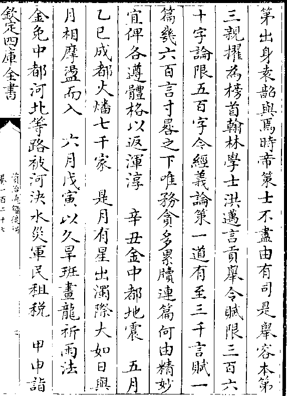 第出身袁韶与焉时帝策士不尽由有司是举容本第三亲擢为榜首翰林学士洪迈言贡举令赋限三百六