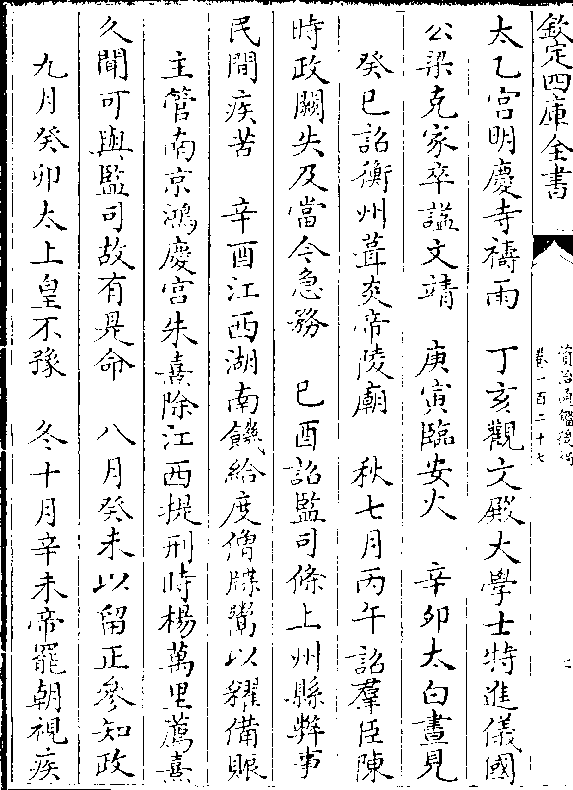 太乙宫明庆寺祷雨 丁亥观文殿大学士特进仪国公梁克家卒谥文靖 庚寅临安火 辛卯太白昼见