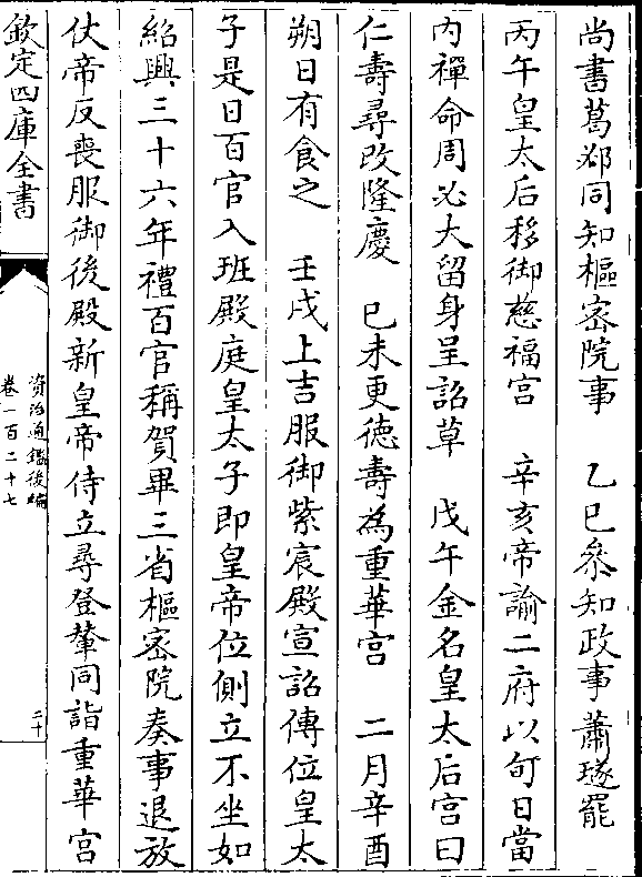 尚书葛邲同知枢密院事 乙巳参知政事萧璲罢丙午皇太后移御慈福宫 辛亥帝谕二府以旬日当