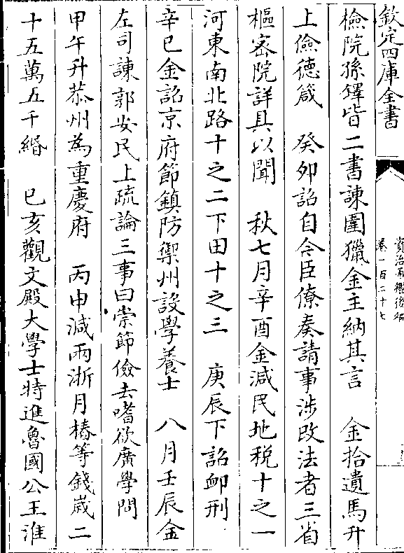 检院孙铎皆二书諌围猎金主纳其言 金拾遗马升上俭德箴 癸卯诏自今臣僚奏请事涉改法者三省
