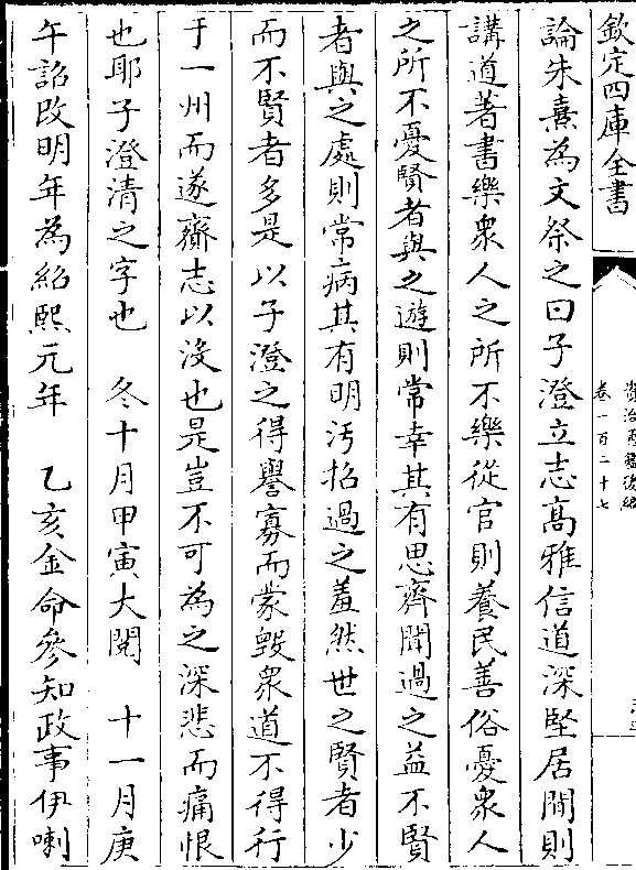 论朱熹为文祭之曰子澄立志高雅信道深坚居閒则讲道著书乐众人之所不乐从官则养民善俗忧众人