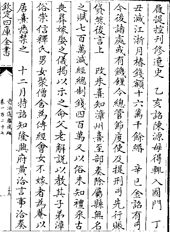 履提控刋修辽史 乙亥诏陈源毋得辄入国门 丁丑减江浙月桩钱额十六万千馀缗 辛巳金诏有司