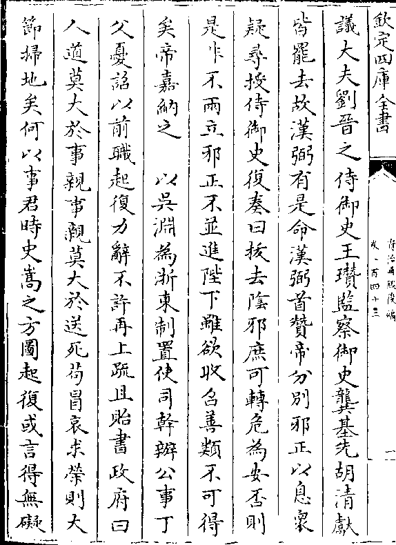 议大夫刘晋之侍御史王瓒监察御史龚基先胡清献皆罢去故汉弼有是命汉弼首赞帝分别邪正以息众