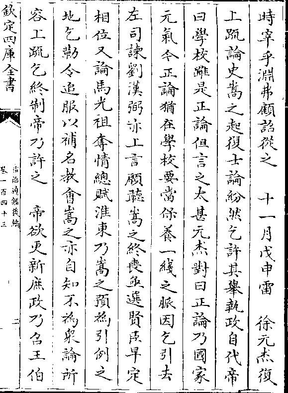时宰乎渊弗顾诏从之 十一月戊申雷 徐元杰复上疏论史嵩之起复士论纷然乞许其举执政自代帝