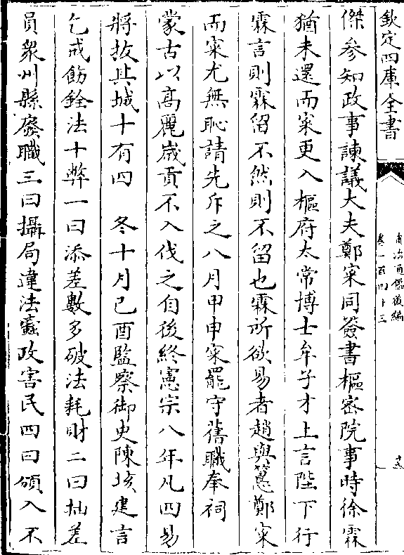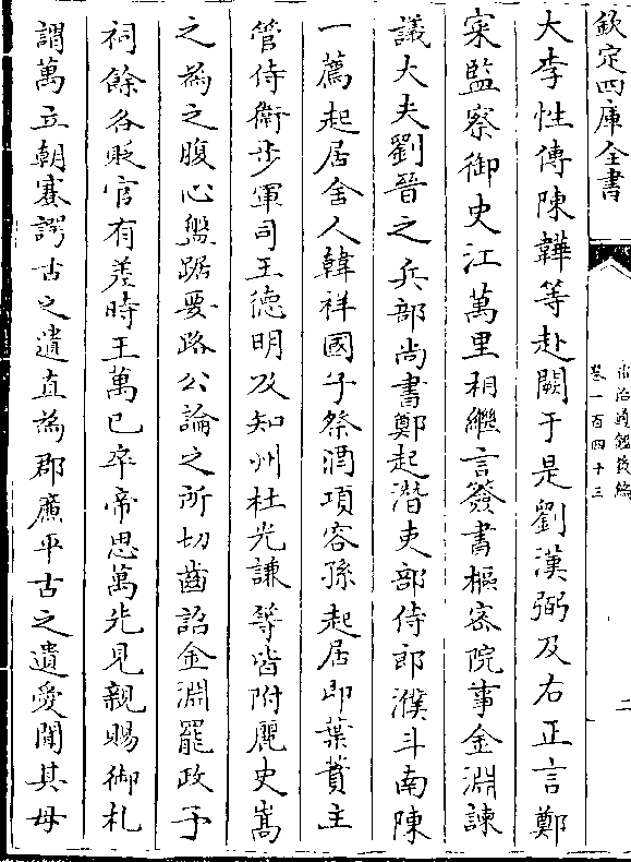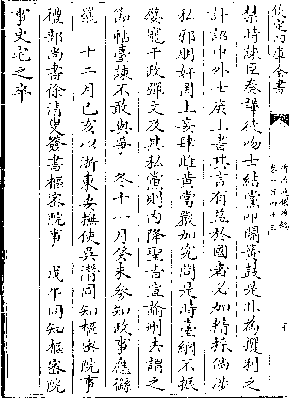 大李性传陈韡等赴阙于是刘汉弼及右正言郑采监察御史江万里相继言签书枢密院事金渊谏