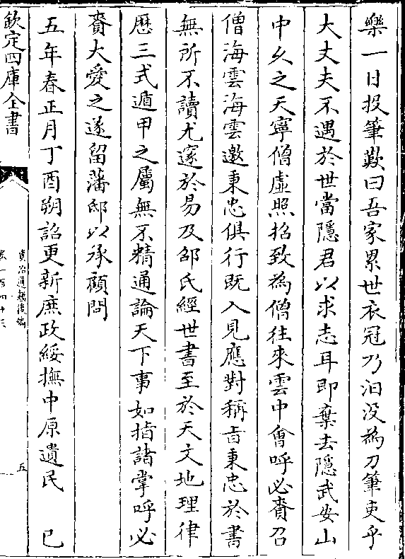 五年春正月丁酉朔诏更新庶政绥抚中原遗民 己