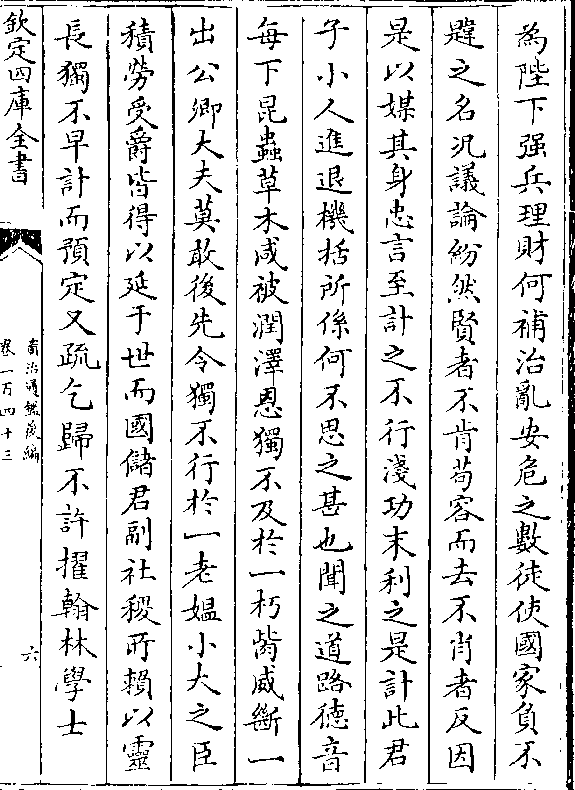 为陛下强兵理财何补治乱安危之数徒使国家负不韪之名况议论纷然贤者不肯苟容而去不肖者反因