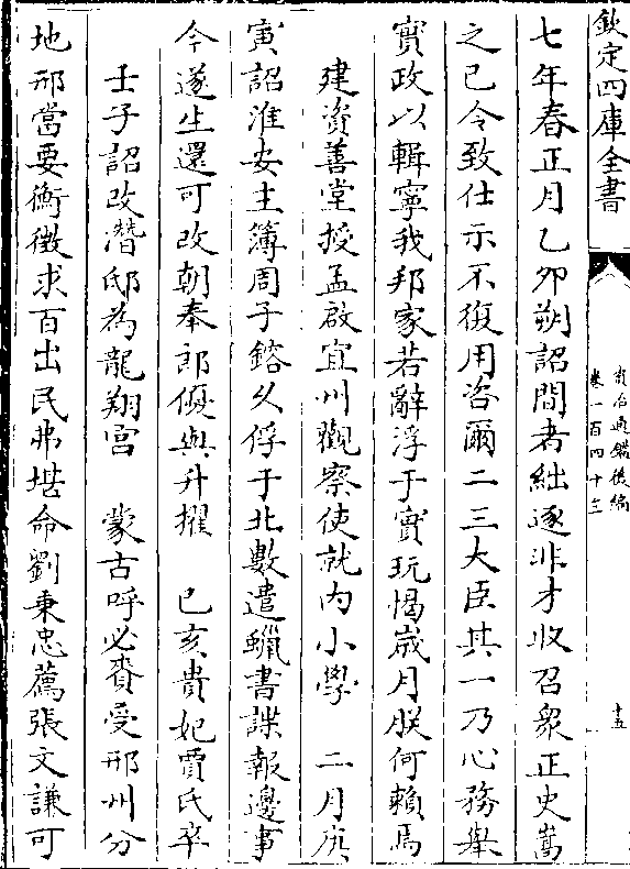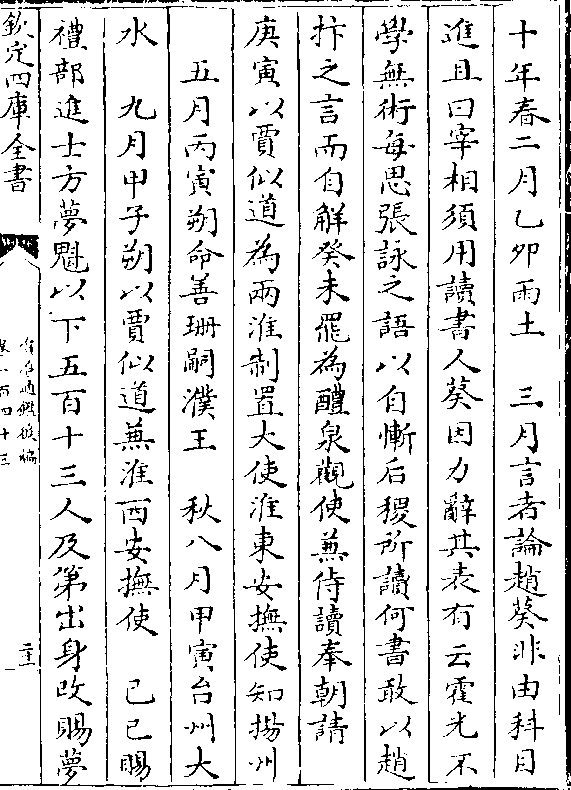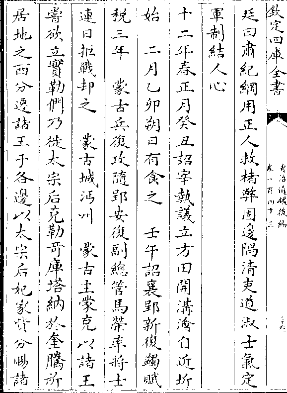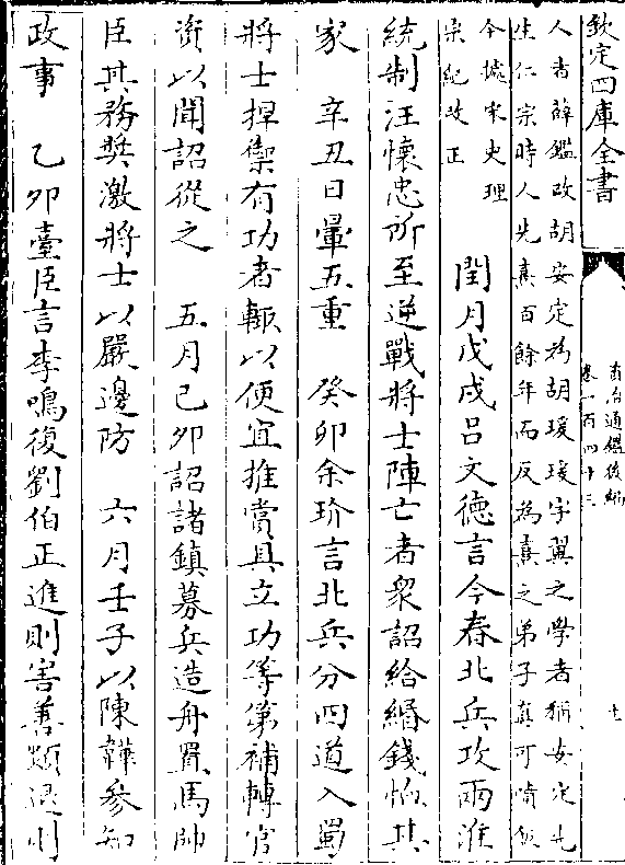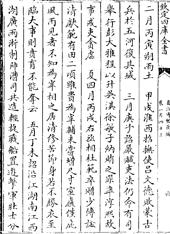 二月丙寅朔雨土 甲戌淮西招抚使吕文德败蒙古兵于五河复其城 三月庚子诏严赃吏法仍命有司