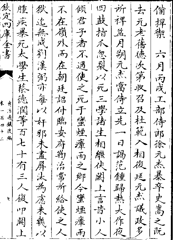备捍禦 六月丙戌工部侍郎徐元杰暴卒史嵩之既去元老旧德次第收召及杜范入相复延元杰议政多