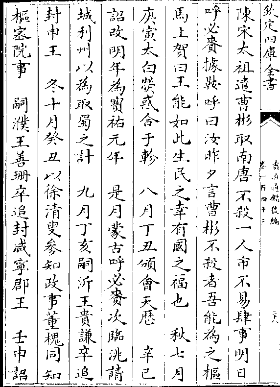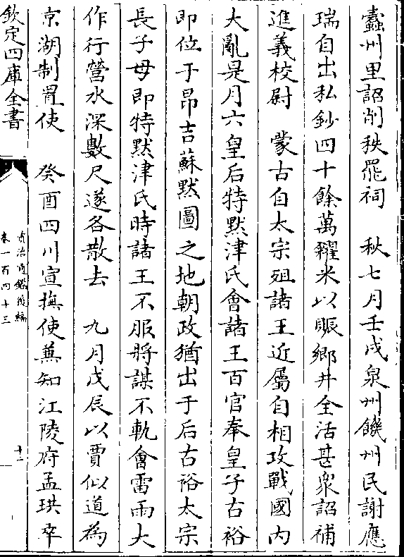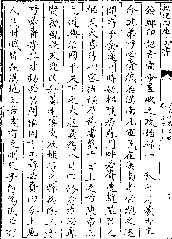发牌印诏旨宣命尽收之政始归一 秋七月蒙古主命其弟呼必赉总治汉南凡军民在汉南者皆总之遂