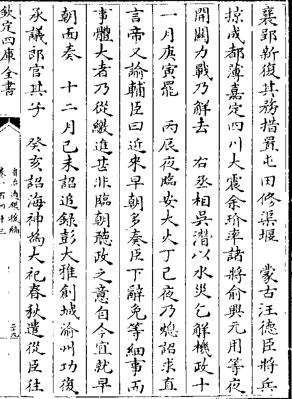 襄郢新复其务措置屯田修渠堰 蒙古汪德臣将兵掠成都薄嘉定四川大震余玠率诸将俞兴元用等夜