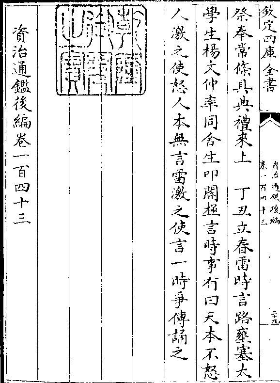 祭奉常条具典礼来上 丁丑立春雷时言路壅塞太学生杨文仲率同舍生叩阍极言时事有曰天本不怒