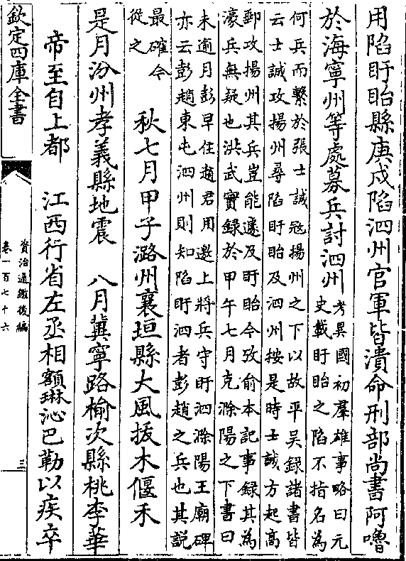 用陷盱眙县庚戌陷泗州官军皆溃命刑部尚书阿噜于海宁州等处募兵讨泗州(考异国初群雄事略曰元/史载盱眙之陷不指名为)