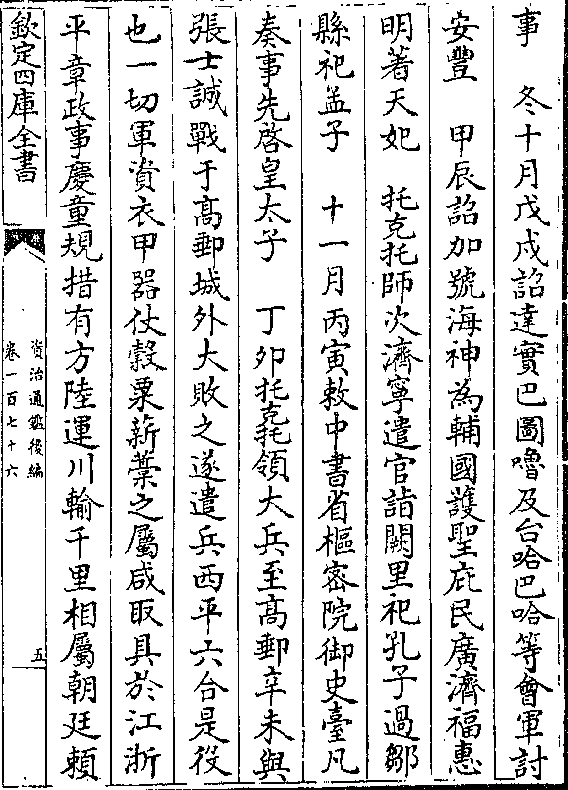 明著天妃 托克托师次济宁遣官诣阙里祀孔子过邹