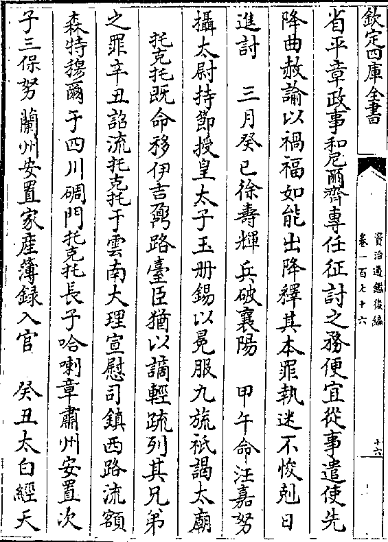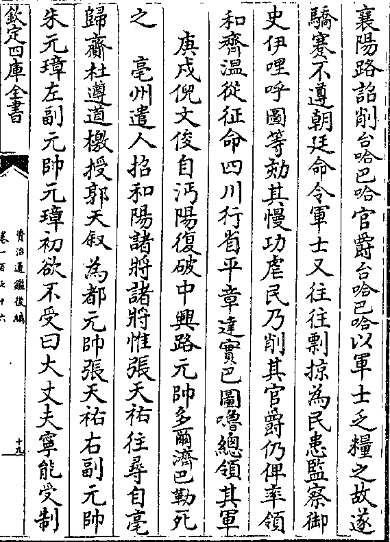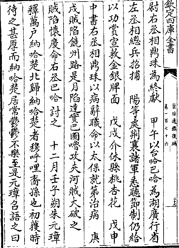 尉右丞相鼎珠为终献 甲午以台哈巴哈为湖广行省左丞相总兵招捕 阳等处荆襄诸军悉听节制仍给
