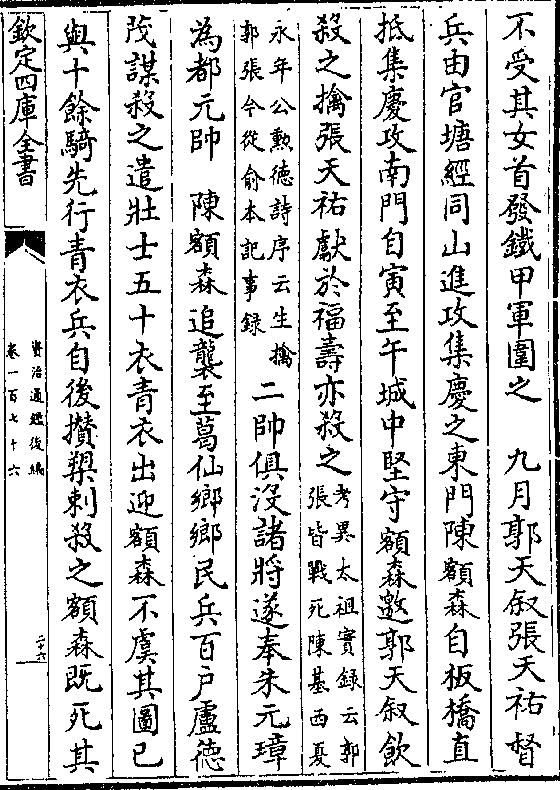 不受其女首发铁甲军围之 九月郭天叙张天祐督兵由官塘经同山进攻集庆之东门陈额森自板桥直
