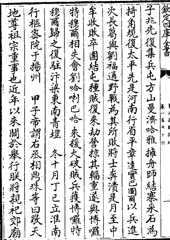 子兆先复集兵屯方山曼济哈雅拥舟师结寨采石为掎角规复太平先是河南行省平章达实巴图尔以兵进