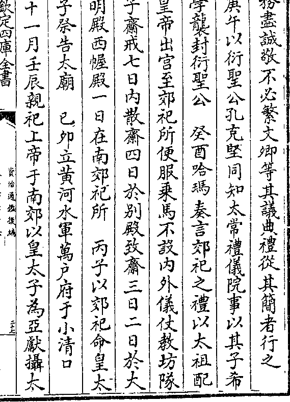 十一月壬辰亲祀上帝于南郊以皇太子为亚献摄太