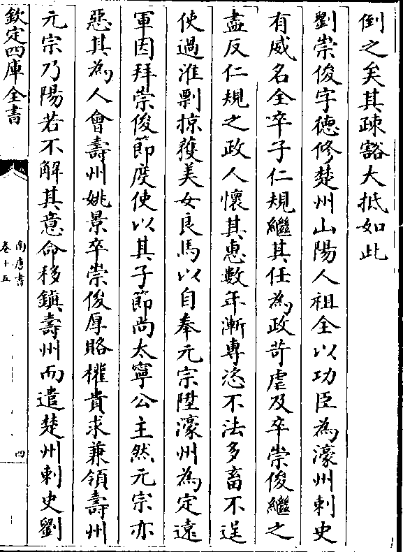 倒之矣其疏豁大抵如此刘崇俊字德修楚州山阳人祖全以功臣为濠州刺史