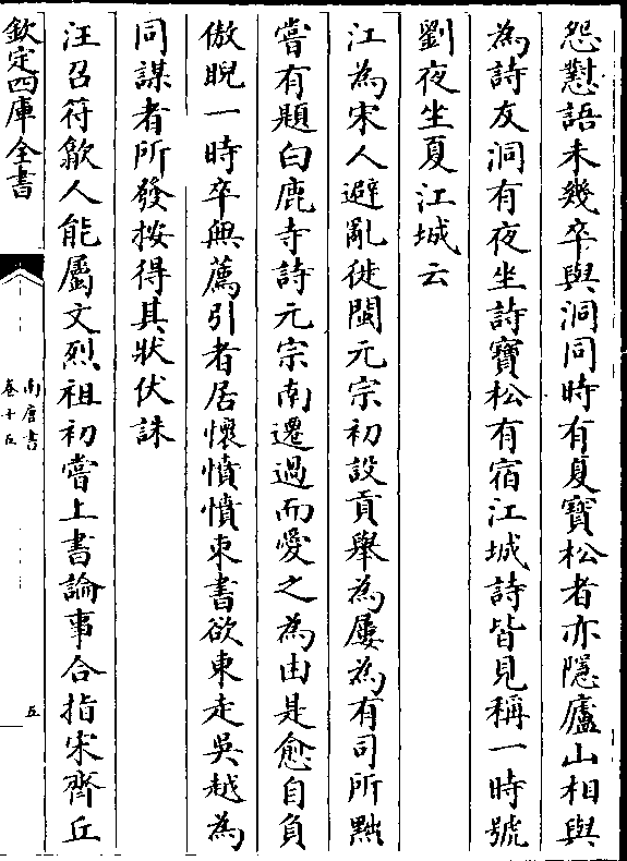 怨怼语未几卒与洞同时有夏宝松者亦隐庐山相与为诗友洞有夜坐诗宝松有宿江城诗皆见称一时号