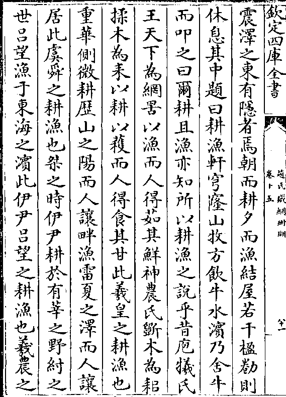 若不及既饫其食又燠其裳故吾适其适而不外之也吾以偃休之所名之曰耕渔幸而贤士大夫多为诗文