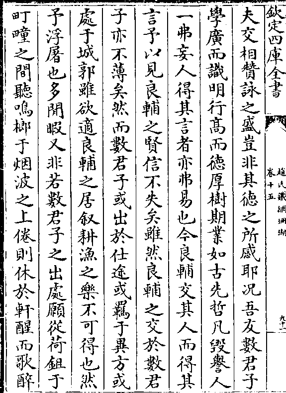 夫交相赞咏之盛岂非其德之所感耶况吾友数君子学广而识明行高而德厚树期业如古先哲凡毁誉人