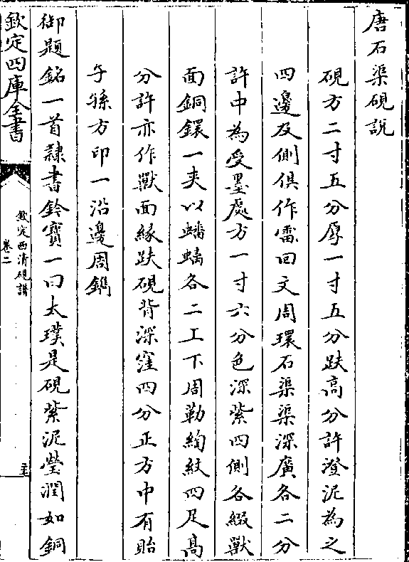御制宋方井砚铭冽寒泉润嘉颖立体于静福田斯永养而不穷者井也
