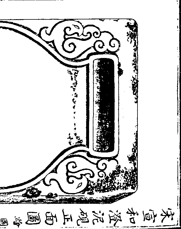 许上方为墨池砚背刻为井字中圆如井栏左侧