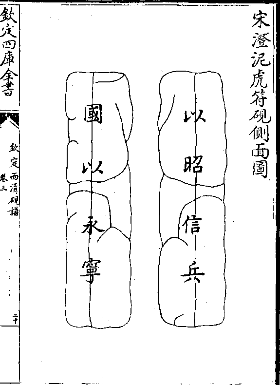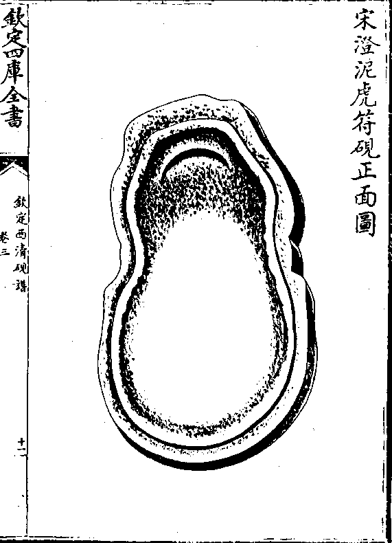 御制题宋澄泥虎符砚式为兵符形似虎意寓炳文济其武坡云磨瓮可供书